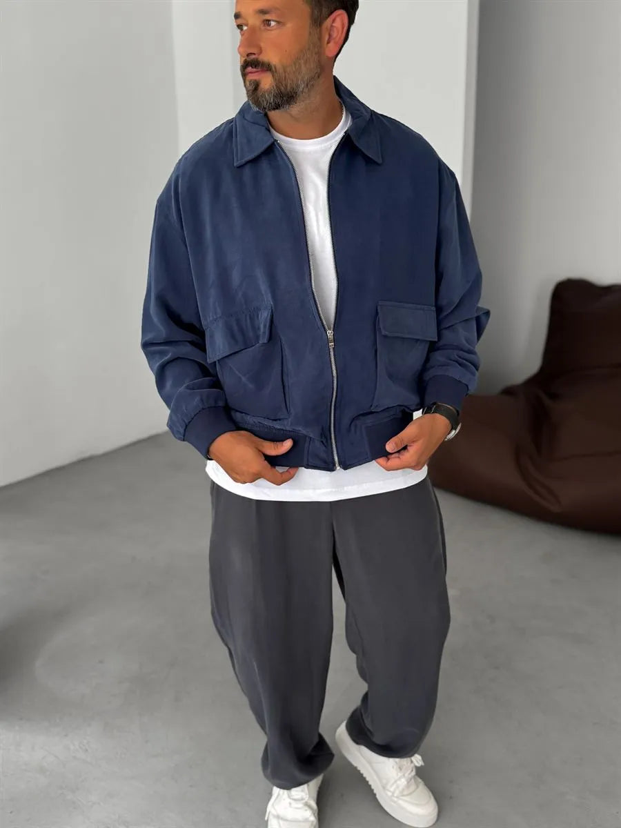 ⚜️ Matière daim haut de gamme, coupe boxy inspirée des codes urbains, poches utilitaires pensées pour allier style et praticité.